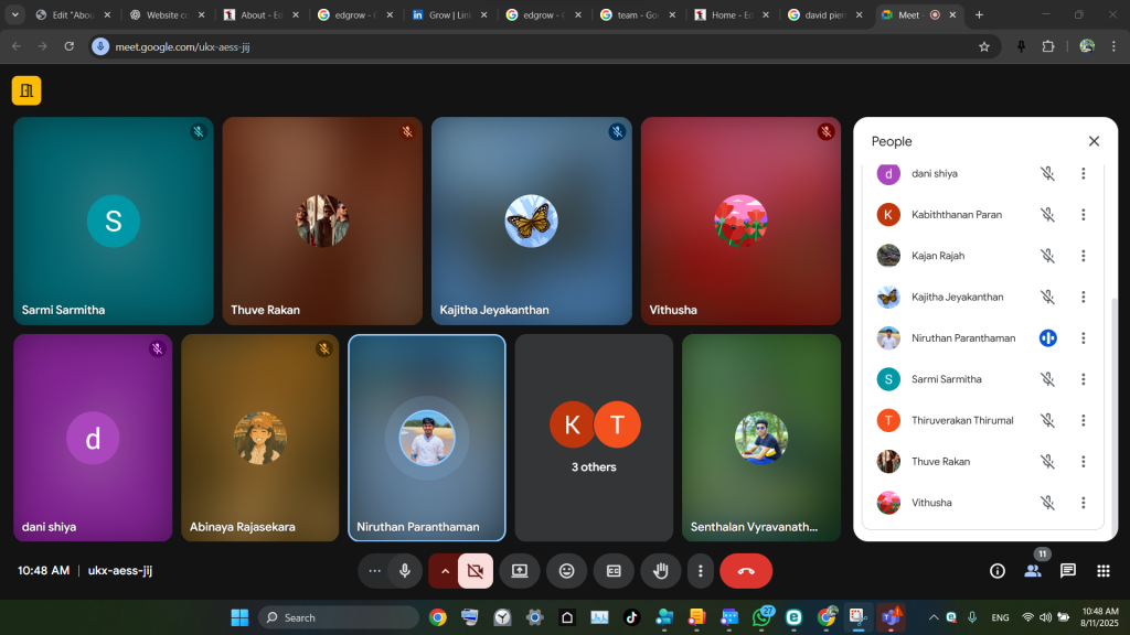 - August 4: Kick-off with a virtual orientation. We hosted our first sessions via Google Meet, setting the tone for what’s ahead. (Screenshots of those calls are worth keeping -they capture the spark in every new face.)