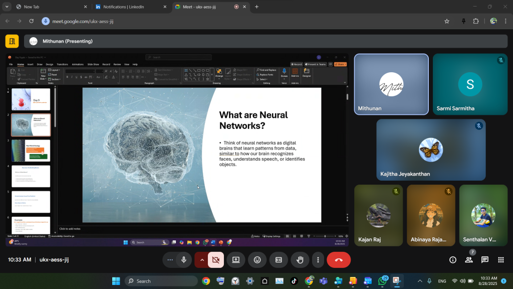 - Week 2 onwards: Streamlined training paths – AI/ML interns diving into models and algorithms, development interns building and breaking code, business interns exploring strategies, and cyber interns stepping into the security-first mindset.